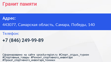 Гранит памяти по адресу 443077, Самарская область, Самара, Победы, 140 в дальнейшем Организация, размещена в следующих категориях: