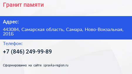 Гранит памяти по адресу 443084, Самарская область, Самара, Ново-Вокзальная, 201Б в дальнейшем Организация, размещена в следующих категориях: