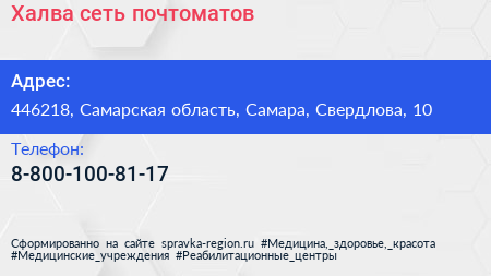 Халва, сеть почтоматов по адресу 446218, Самарская область, Самара, Свердлова, 10 в дальнейшем Организация, размещена в следующих категориях: