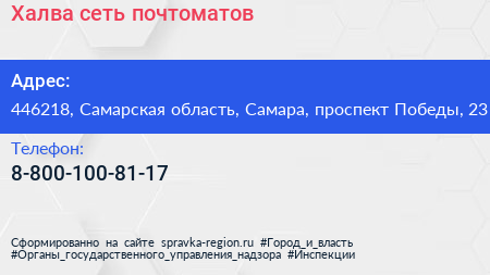 Халва, сеть почтоматов по адресу 446218, Самарская область, Самара, проспект Победы, 23 в дальнейшем Организация, размещена в следующих категориях: