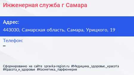 Инженерная служба, г. Самара по адресу 443030, Самарская область, Самара, Урицкого, 19 в дальнейшем Организация, размещена в следующих категориях: