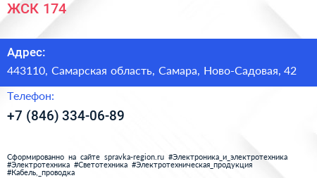 ЖСК 174 по адресу 443110, Самарская область, Самара, Ново-Садовая, 42 в дальнейшем Организация, размещена в следующих категориях: