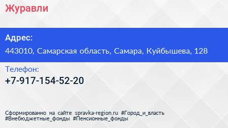 Журавли по адресу 443010, Самарская область, Самара, Куйбышева, 128 в дальнейшем Организация, размещена в следующих категориях: