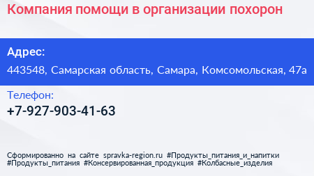 Компания помощи в организации похорон по адресу 443548, Самарская область, Самара, Комсомольская, 47а в дальнейшем Организация, размещена в следующих категориях: