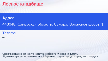 Лесное кладбище по адресу 443048, Самарская область, Самара, Волжское шоссе, 1 в дальнейшем Организация, размещена в следующих категориях: