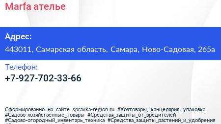 Marfa, ателье по адресу 443011, Самарская область, Самара, Ново-Садовая, 265а в дальнейшем Организация, размещена в следующих категориях: