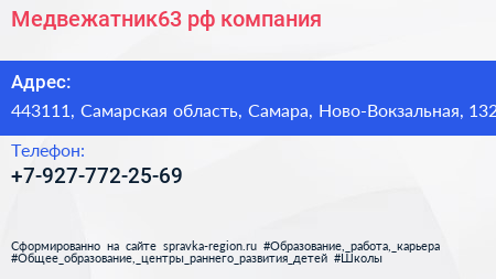 Медвежатник63.рф, компания по адресу 443111, Самарская область, Самара, Ново-Вокзальная, 132 в дальнейшем Организация, размещена в следующих категориях: