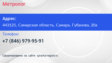 Метролог по адресу 443125, Самарская область, Самара, Губанова, 20а в дальнейшем Организация, размещена в следующих категориях: