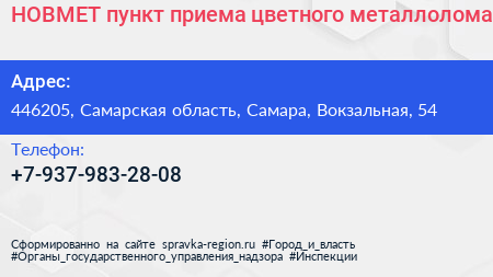 НОВМЕТ, пункт приема цветного металлолома по адресу 446205, Самарская область, Самара, Вокзальная, 54 в дальнейшем Организация, размещена в следующих категориях: