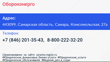 Оборонэнерго по адресу 443099, Самарская область, Самара, Комсомольская, 27а в дальнейшем Организация, размещена в следующих категориях: