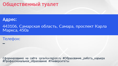 Общественный туалет по адресу 443106, Самарская область, Самара, проспект Карла Маркса, 450а в дальнейшем Организация, размещена в следующих категориях: