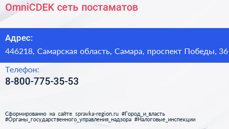 OmniCDEK, сеть постаматов по адресу 446218, Самарская область, Самара, проспект Победы, 36 в дальнейшем Организация, размещена в следующих категориях: