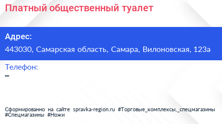 Платный общественный туалет по адресу 443030, Самарская область, Самара, Вилоновская, 123а в дальнейшем Организация, размещена в следующих категориях: