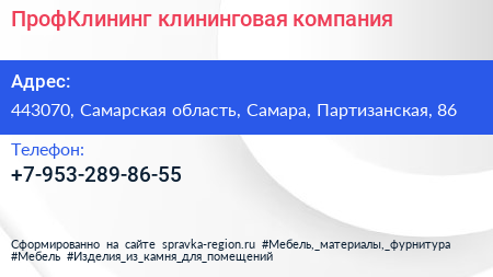 ПрофКлининг, клининговая компания по адресу 443070, Самарская область, Самара, Партизанская, 86 в дальнейшем Организация, размещена в следующих категориях: