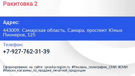 Ракитовка-2 по адресу 443009, Самарская область, Самара, проспект Юных Пионеров, 125 в дальнейшем Организация, размещена в следующих категориях: