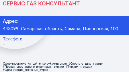 СЕРВИС-ГАЗ-КОНСУЛЬТАНТ по адресу 443099, Самарская область, Самара, Пионерская, 100 в дальнейшем Организация, размещена в следующих категориях: