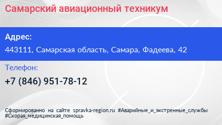 Самарский авиационный техникум по адресу 443111, Самарская область, Самара, Фадеева, 42 в дальнейшем Организация, размещена в следующих категориях: