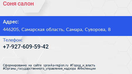 Соня, салон по адресу 446205, Самарская область, Самара, Суворова, 8 в дальнейшем Организация, размещена в следующих категориях:
