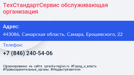ТехСтандартСервис, обслуживающая организация по адресу 443086, Самарская область, Самара, Ерошевского, 22 в дальнейшем Организация, размещена в следующих категориях: