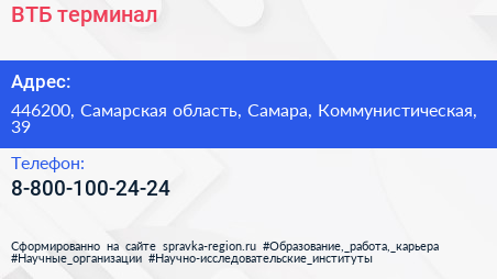 ВТБ, терминал по адресу 446200, Самарская область, Самара, Коммунистическая, 39 в дальнейшем Организация, размещена в следующих категориях: