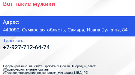 Вот такие мужики! по адресу 443080, Самарская область, Самара, Ивана Булкина, 84 в дальнейшем Организация, размещена в следующих категориях:
