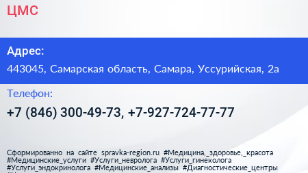 ЦМС по адресу 443045, Самарская область, Самара, Уссурийская, 2а в дальнейшем Организация, размещена в следующих категориях: