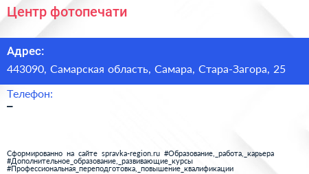 Центр фотопечати по адресу 443090, Самарская область, Самара, Стара-Загора, 25 в дальнейшем Организация, размещена в следующих категориях: