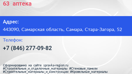 63+, аптека по адресу 443090, Самарская область, Самара, Стара-Загора, 52 в дальнейшем Организация, размещена в следующих категориях: