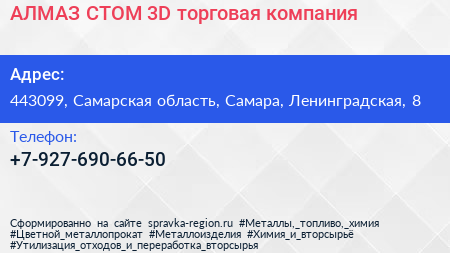 АЛМАЗ СТОМ 3D, торговая компания по адресу 443099, Самарская область, Самара, Ленинградская, 8 в дальнейшем Организация, размещена в следующих категориях: