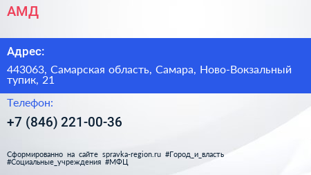 АМД по адресу 443063, Самарская область, Самара, Ново-Вокзальный тупик, 21 в дальнейшем Организация, размещена в следующих категориях: