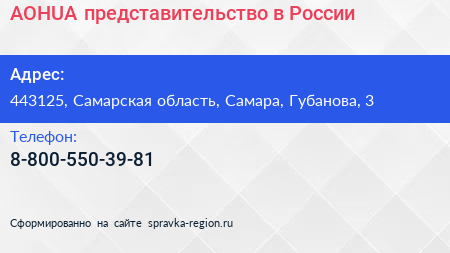 AOHUA, представительство в России по адресу 443125, Самарская область, Самара, Губанова, 3 в дальнейшем Организация, размещена в следующих категориях:
