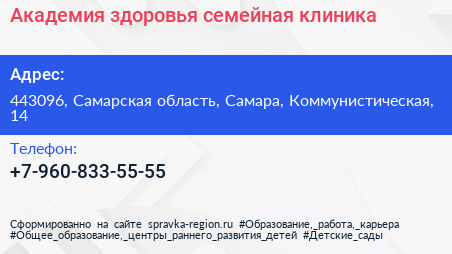 Академия здоровья, семейная клиника по адресу 443096, Самарская область, Самара, Коммунистическая, 14 в дальнейшем Организация, размещена в следующих категориях: