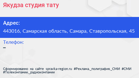 Якудза, студия тату по адресу 443016, Самарская область, Самара, Ставропольская, 45 в дальнейшем Организация, размещена в следующих категориях: