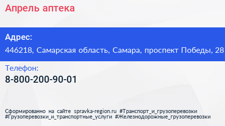 Апрель, аптека по адресу 446218, Самарская область, Самара, проспект Победы, 28 в дальнейшем Организация, размещена в следующих категориях: