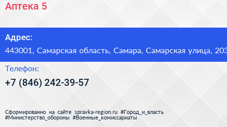 Аптека №5 по адресу 443001, Самарская область, Самара, Самарская улица, 203 в дальнейшем Организация, размещена в следующих категориях: