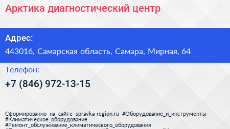 Арктика, диагностический центр по адресу 443016, Самарская область, Самара, Мирная, 64 в дальнейшем Организация, размещена в следующих категориях: