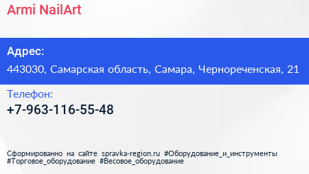 Armi.NailArt по адресу 443030, Самарская область, Самара, Чернореченская, 21 в дальнейшем Организация, размещена в следующих категориях:
