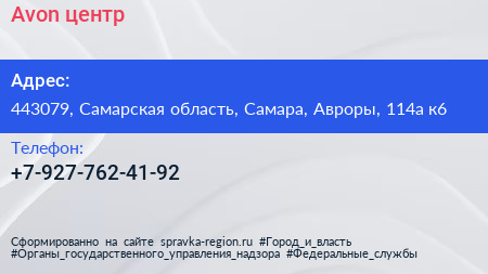 Avon, центр по адресу 443079, Самарская область, Самара, Авроры, 114а к6 в дальнейшем Организация, размещена в следующих категориях: