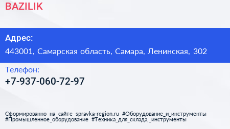 BAZILIK по адресу 443001, Самарская область, Самара, Ленинская, 302 в дальнейшем Организация, размещена в следующих категориях: