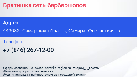 Братишка, сеть барбершопов по адресу 443032, Самарская область, Самара, Осетинская, 5 в дальнейшем Организация, размещена в следующих категориях: