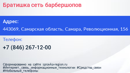Братишка, сеть барбершопов по адресу 443069, Самарская область, Самара, Революционная, 156 в дальнейшем Организация, размещена в следующих категориях: