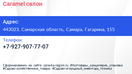Caramel, салон по адресу 443023, Самарская область, Самара, Гагарина, 155 в дальнейшем Организация, размещена в следующих категориях: