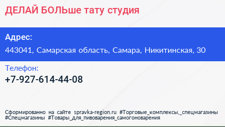 ДЕЛАЙ БОЛЬше, тату-студия по адресу 443041, Самарская область, Самара, Никитинская, 30 в дальнейшем Организация, размещена в следующих категориях: