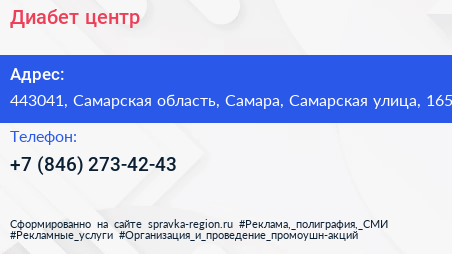 Диабет, центр по адресу 443041, Самарская область, Самара, Самарская улица, 165 в дальнейшем Организация, размещена в следующих категориях:
