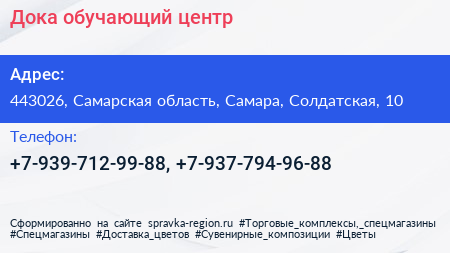 Дока, обучающий центр по адресу 443026, Самарская область, Самара, Солдатская, 10 в дальнейшем Организация, размещена в следующих категориях: