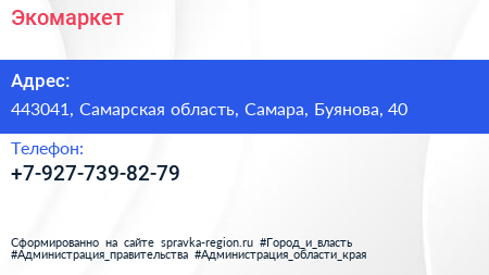 Экомаркет по адресу 443041, Самарская область, Самара, Буянова, 40 в дальнейшем Организация, размещена в следующих категориях: