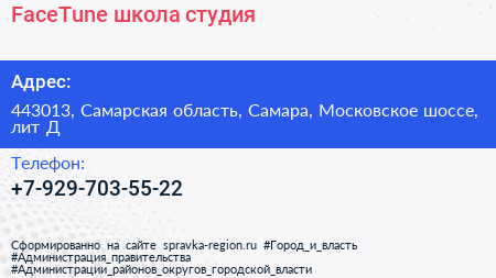 FaceTune, школа-студия по адресу 443013, Самарская область, Самара, Московское шоссе, лит Д в дальнейшем Организация, размещена в следующих категориях: