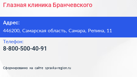 Глазная клиника Бранчевского по адресу 446200, Самарская область, Самара, Репина, 11 в дальнейшем Организация, размещена в следующих категориях: