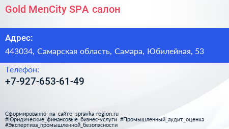 Gold MenCity, SPA-салон по адресу 443034, Самарская область, Самара, Юбилейная, 53 в дальнейшем Организация, размещена в следующих категориях: