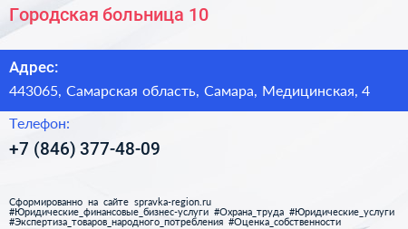 Городская больница №10 по адресу 443065, Самарская область, Самара, Медицинская, 4 в дальнейшем Организация, размещена в следующих категориях: